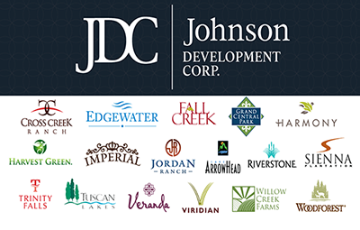Founded in 1975, Johnson Development boasts more than 90 employees in nine locations. The company has 17 communities under active development in Houston, Dallas-Fort Worth and Atlanta. Houston-area communities include Cross Creek Ranch, Edgewater, Fall Creek, Grand Central Park, Harmony, Harvest Green, Imperial, Jordan Ranch, Riverstone, Sienna Plantation, Tuscan Lakes, Veranda, Willow Creek Farms and Woodforest. In Dallas-Fort Worth, Johnson Development projects are Trinity Falls and Viridian. The company is developing Lake Arrowhead in Atlanta.