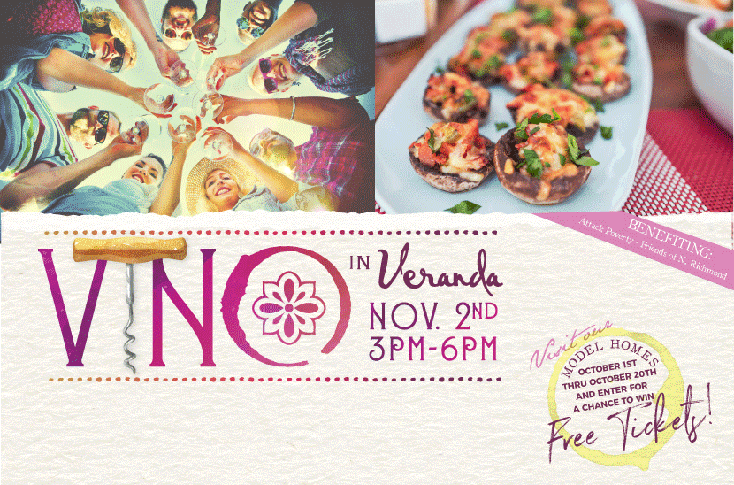 Foodies and wine aficionados take note, we’ll be showcasing Richmond’s spectacular array of restaurants, wineries and breweries during the 1st annual Vino in Veranda from 3 to 6 p.m. on Saturday, Nov. 2.