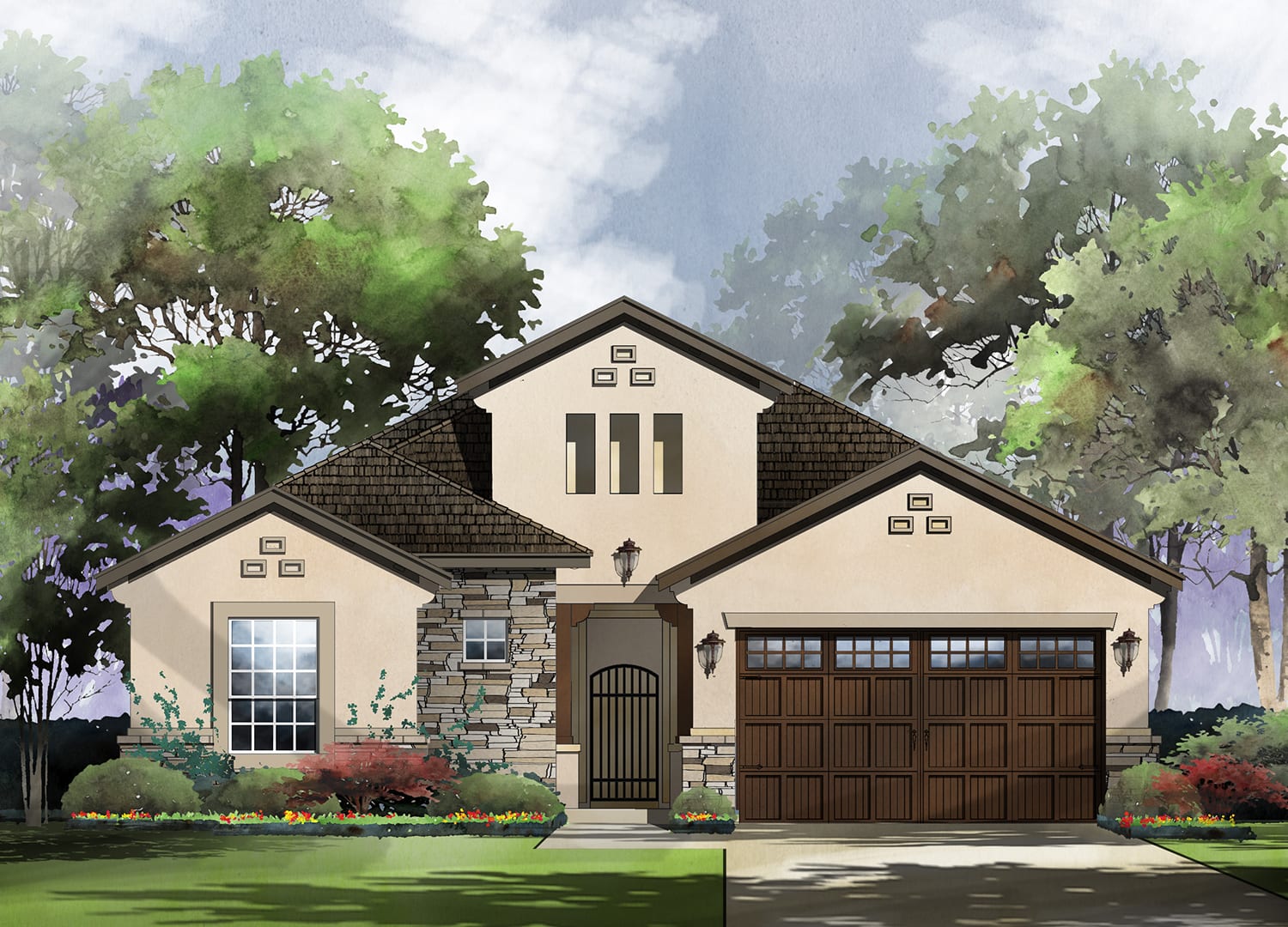 Offers in Veranda. Designs range from 1,942 to 2,604 square feet and are priced from the $380,000s. Each home offers three bedrooms, large, island kitchens, covered patios and two-car garages. Optional bonus rooms are available.